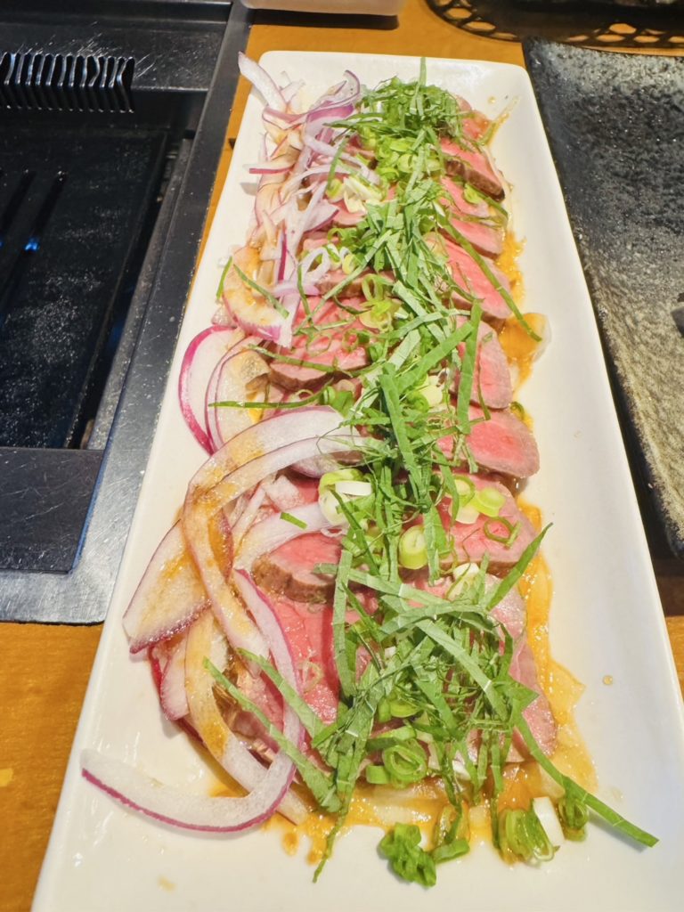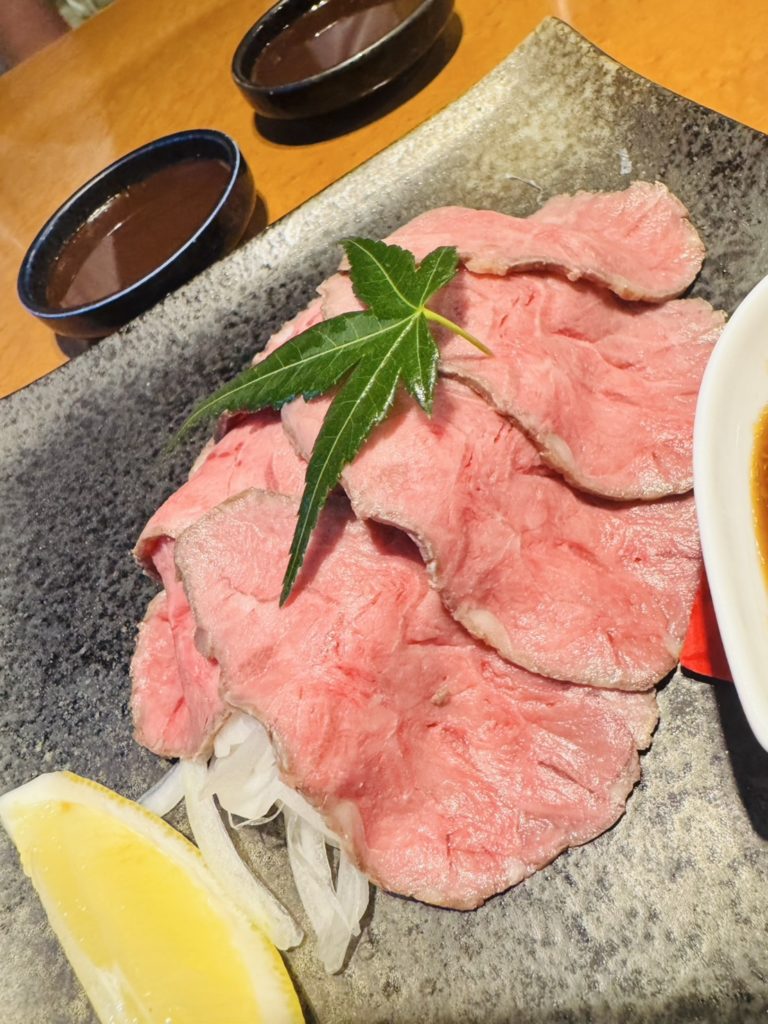当日は、土佐あかうしを始めとする多彩なお料理を囲み、9ヶ月長期熟成した土佐あかうしのモモ肉とローストビーフの試食をしました。